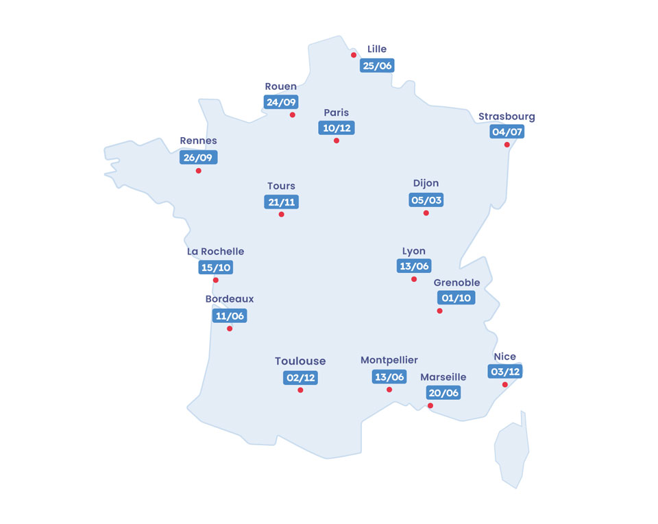 Rendez-vous au plus proche de votre cabinet de 13h30 à 18h00, pour une demi-journée dédiée à nos solutions :